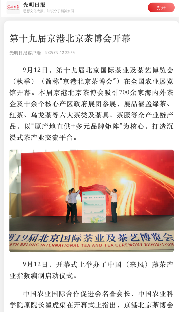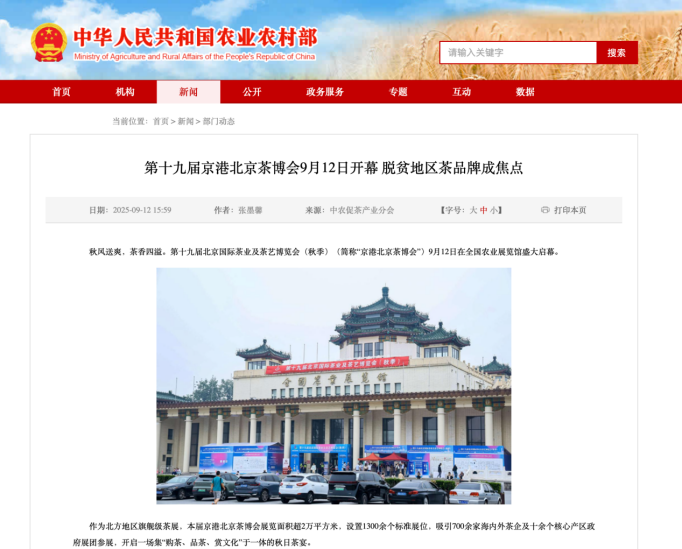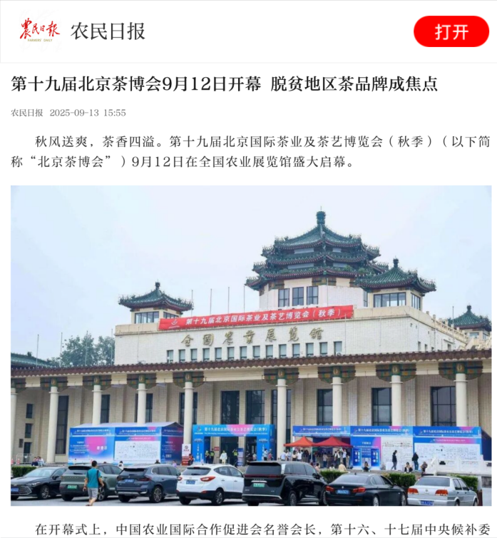 农民日报:第十九届北京茶博会9月12日开幕 脱贫地区茶品牌成焦点