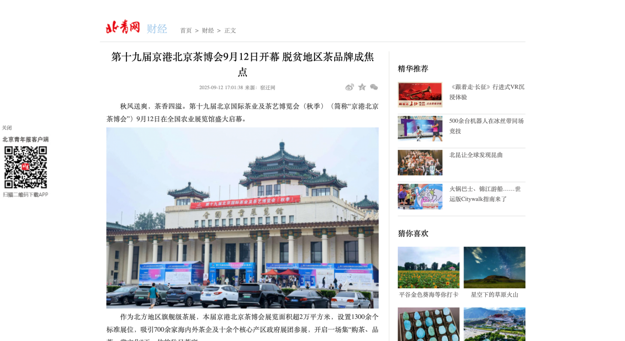 北青网:第十九届京港北京茶博会9月12日开幕 脱贫地区茶品牌成焦点