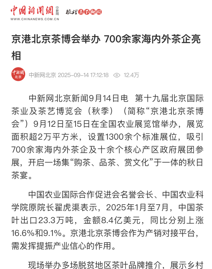 新华网:2025北京国际茶业及茶艺博览会(秋季)开幕