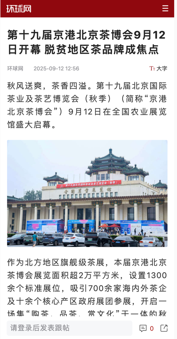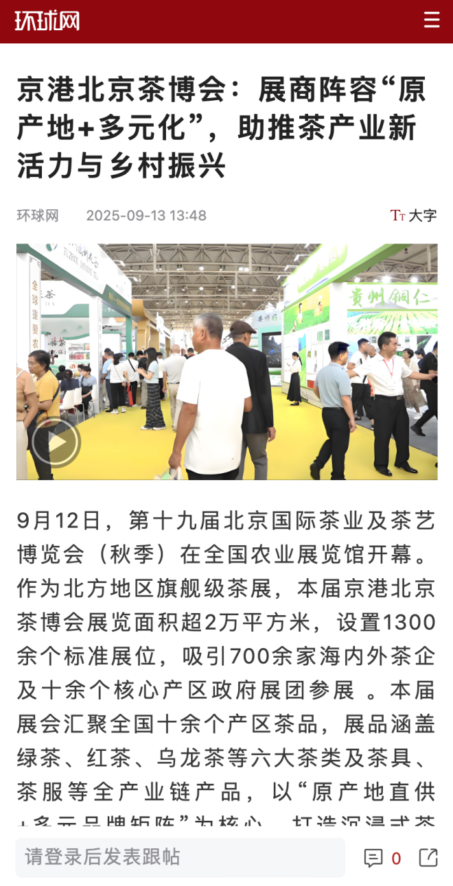环球网:京港北京茶博会:展商阵容“原产地+多元化”,助推茶产业新活力与乡村振兴