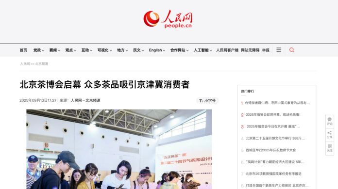 人民网:北京茶博会启幕 众多茶品吸引京津冀消费者