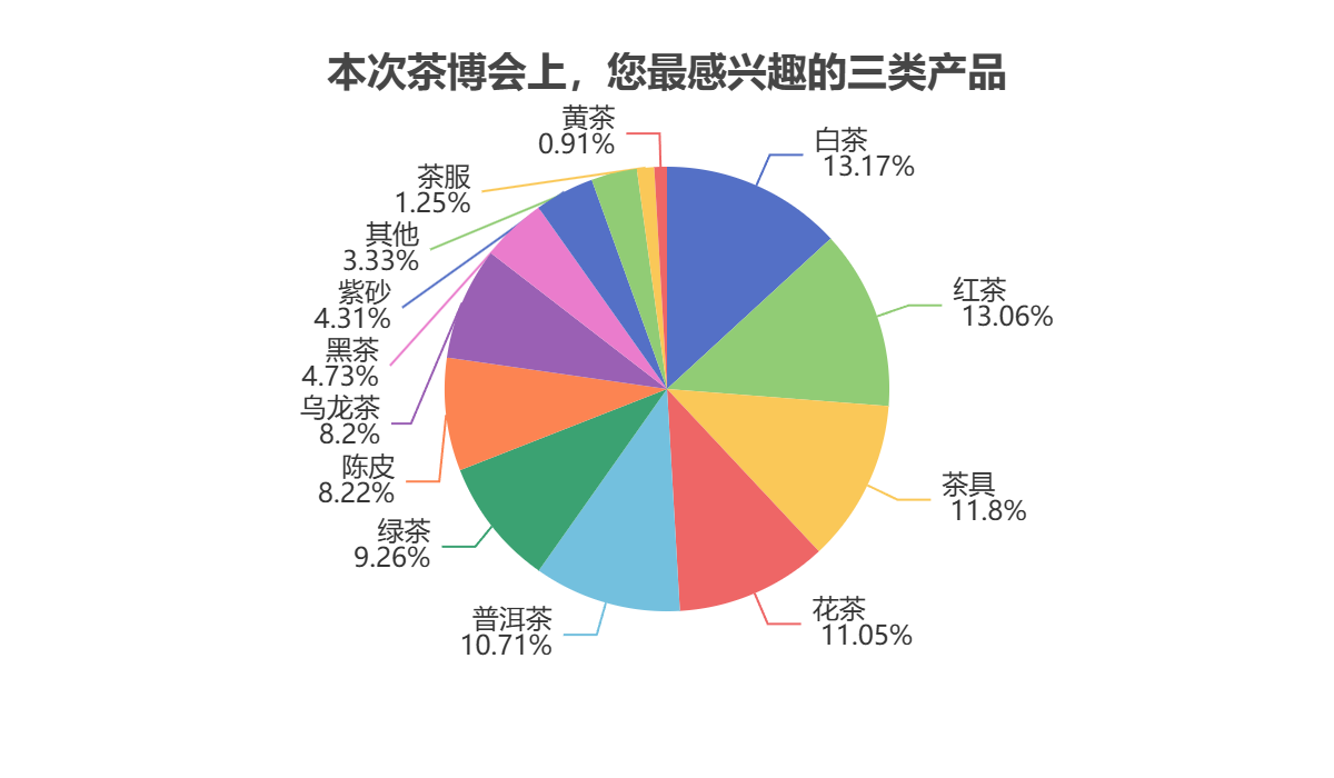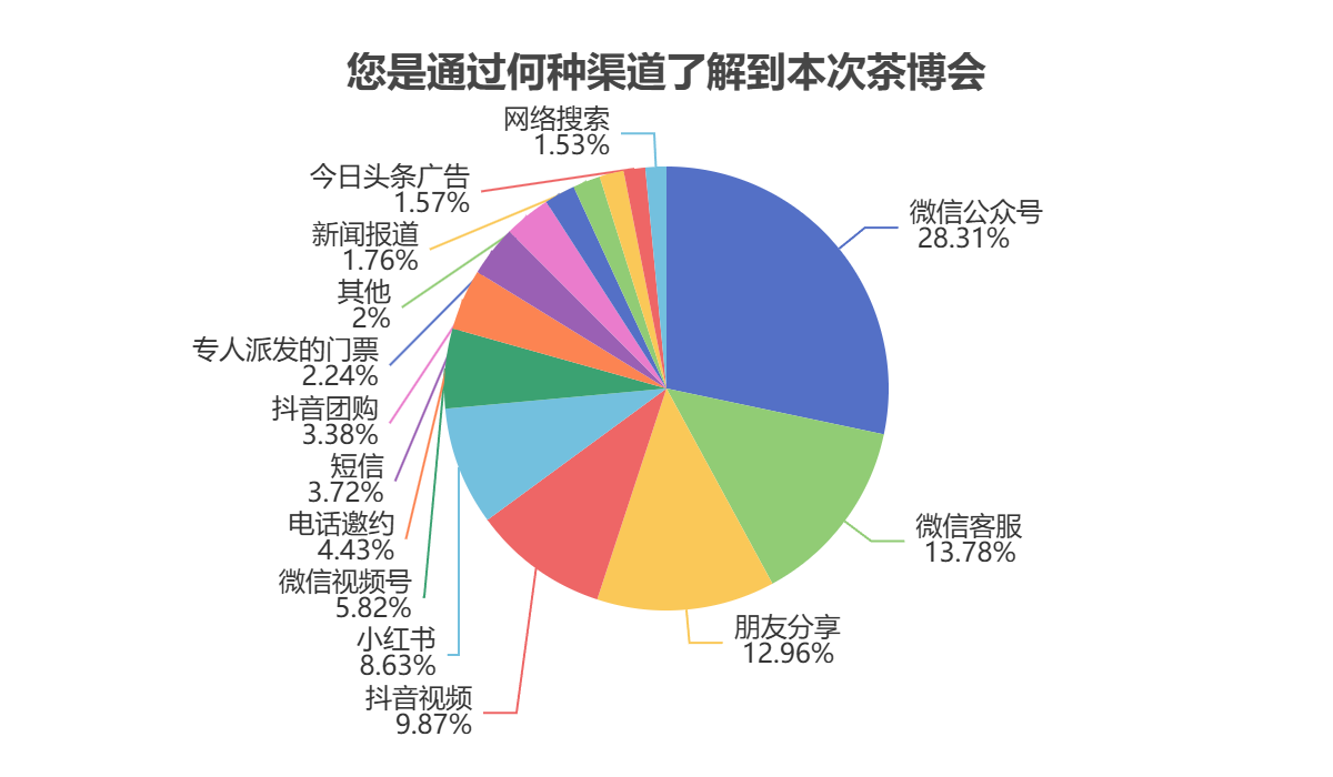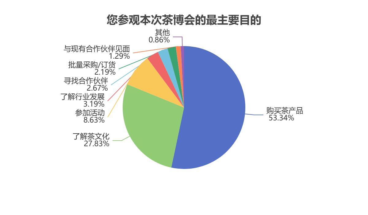 第十九届北京国际茶业及茶艺博览会观众参观调研自2025年9月14日开始,至9月24日正式结束,共收到问卷2049个,其中有效问卷2042个,全部为参观过本届展会的观众,具体情况如下列图表: