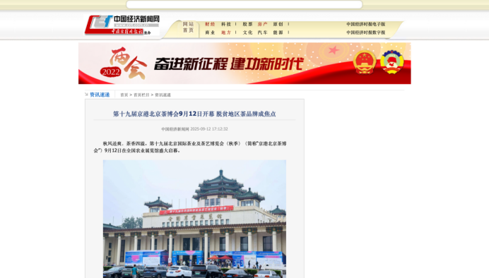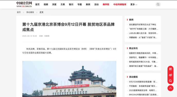 中国经济新闻网:第十九届京港北京茶博会9月12日开幕 脱贫地区茶品牌成焦点
