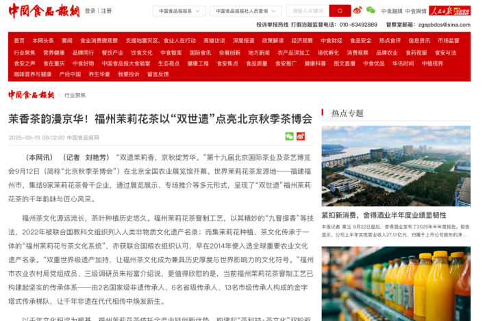 中国食品报网:茉香茶韵漫京华!福州茉莉花茶以“双世遗”点亮北京秋季茶博会