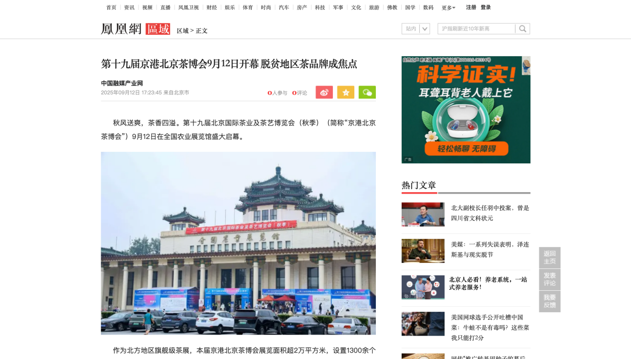 凤凰网区域:第十九届京港北京茶博会9月12日开幕 脱贫地区茶品牌成焦点