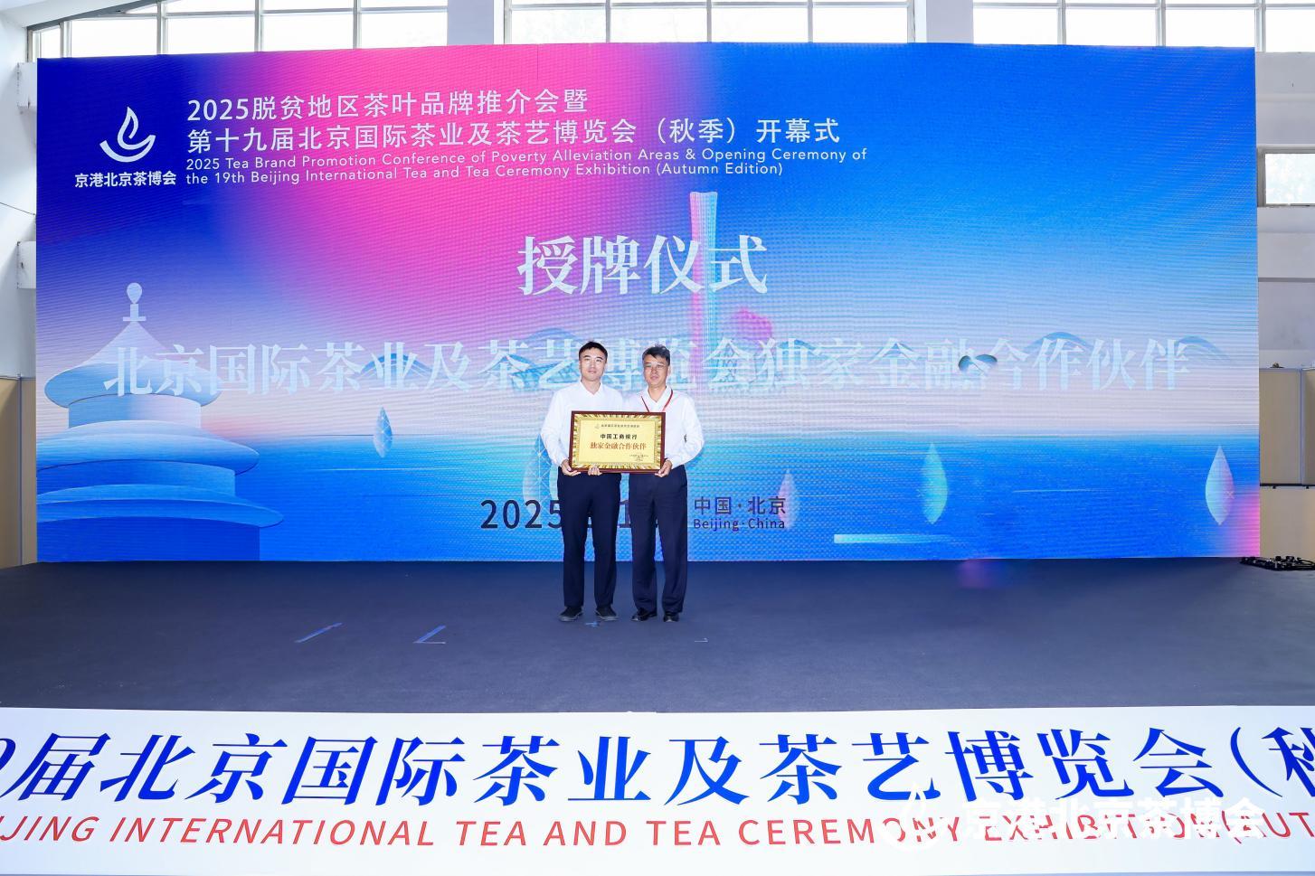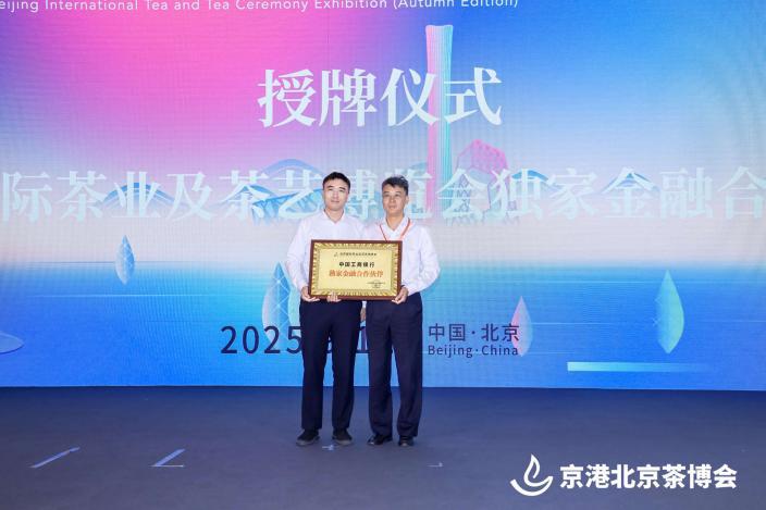 从2024年到2025年,中国工商银行同北京茶博会组委会连续四届深度合作,本届茶博会开幕式上举办了中国工商银行“北京国际茶业及茶艺博览会独家金融合作伙伴”授牌仪式。中国农业国际合作促进会副会长、茶产业分会常务副会长魏有代表主办方授牌,中国工商银行北京分行珠市口支行行长张建东接牌。未来双方将围绕信贷支持、产业链融资等方向深化合作,为茶农提供金融保障,以金融“活水”精准滴灌脱贫地区茶产业。