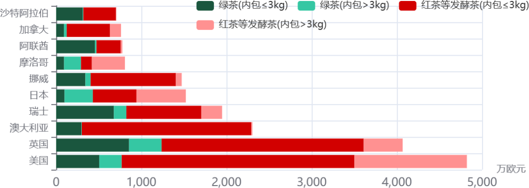 2024年欧盟出口茶叶主要贸易伙伴(出口额):