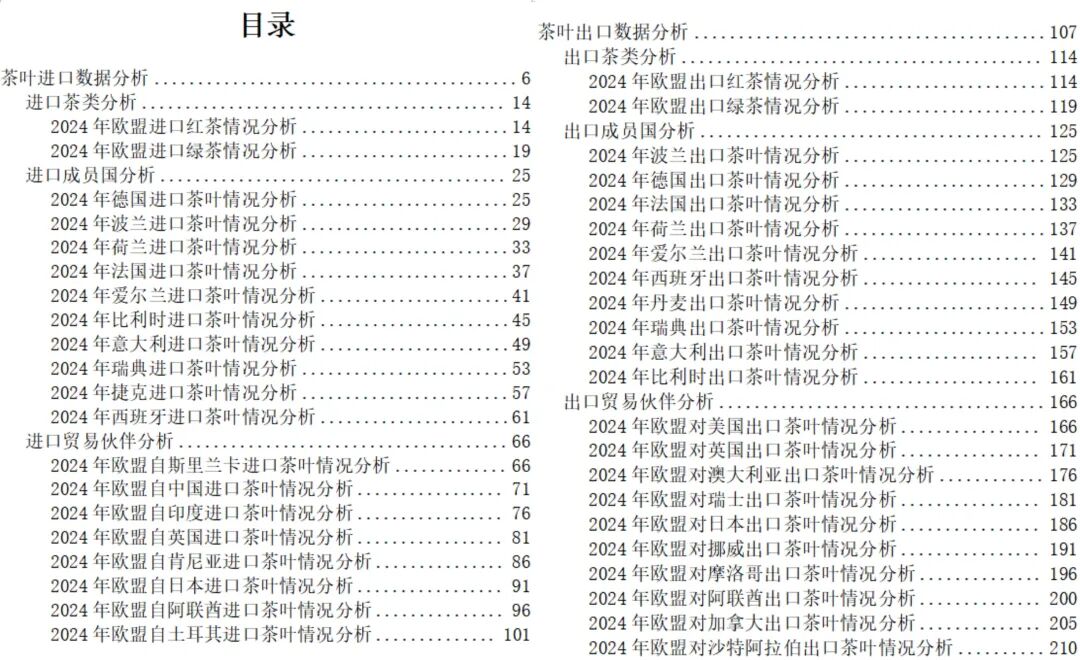 本报告不仅是了解欧盟茶叶市场动态的“数据宝典”,更为中国茶企“出海”、政策制定、市场研判提供了重要参考。通过精准把握欧盟各国消费趋势与贸易结构,有助于我国茶产业优化出口策略,提升国际竞争力。