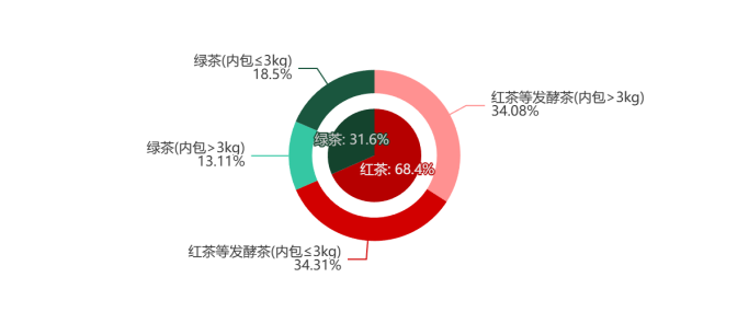 从茶类结构来看,红茶为欧盟最大的进出口茶类,进口量9.16万吨,占比76.44%,进口额3.99亿欧元,占比68.40%,出口量1.76万吨,占比80.55%,出口额1.90亿欧元,占比71.66%;绿茶为第二大进出口茶类,进口量2.82万吨,占比23.56%,进口额1.84亿欧元,占比31.60%,出口量4244.37吨,占比19.45%,出口额7503.33万欧元,占比28.34%。