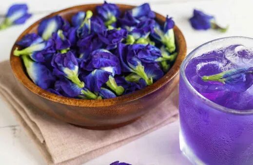 蝶豆花(Clitoria ternatea),又名蓝蝴蝶、蓝豆花,是一种原产于东南亚的豆科植物,其花瓣呈鲜艳的蓝色。它常被用作天然食用色素(赋予食物蓝色或紫色)或作为花草茶的原料。