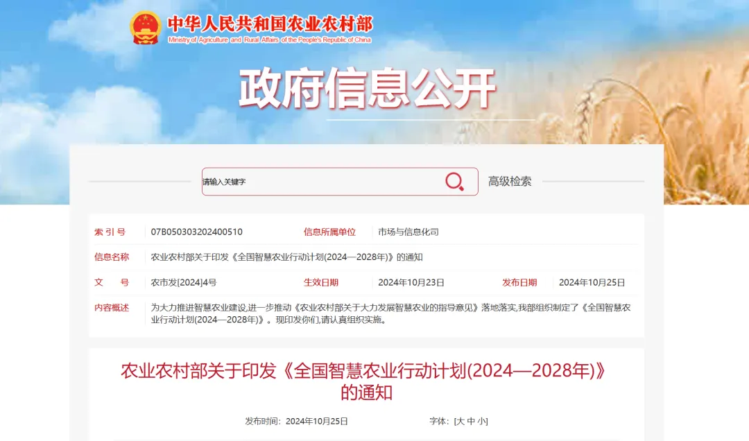 农业农村部关于印发《全国智慧农业行动计划(2024—2028年)》的通知