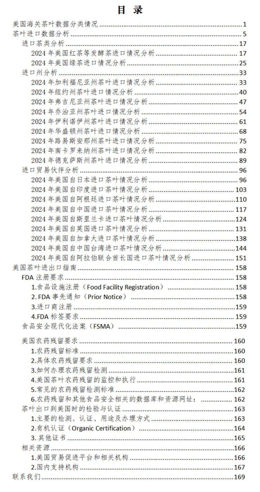 《美国茶叶进口数据报告(2024)》目录一览